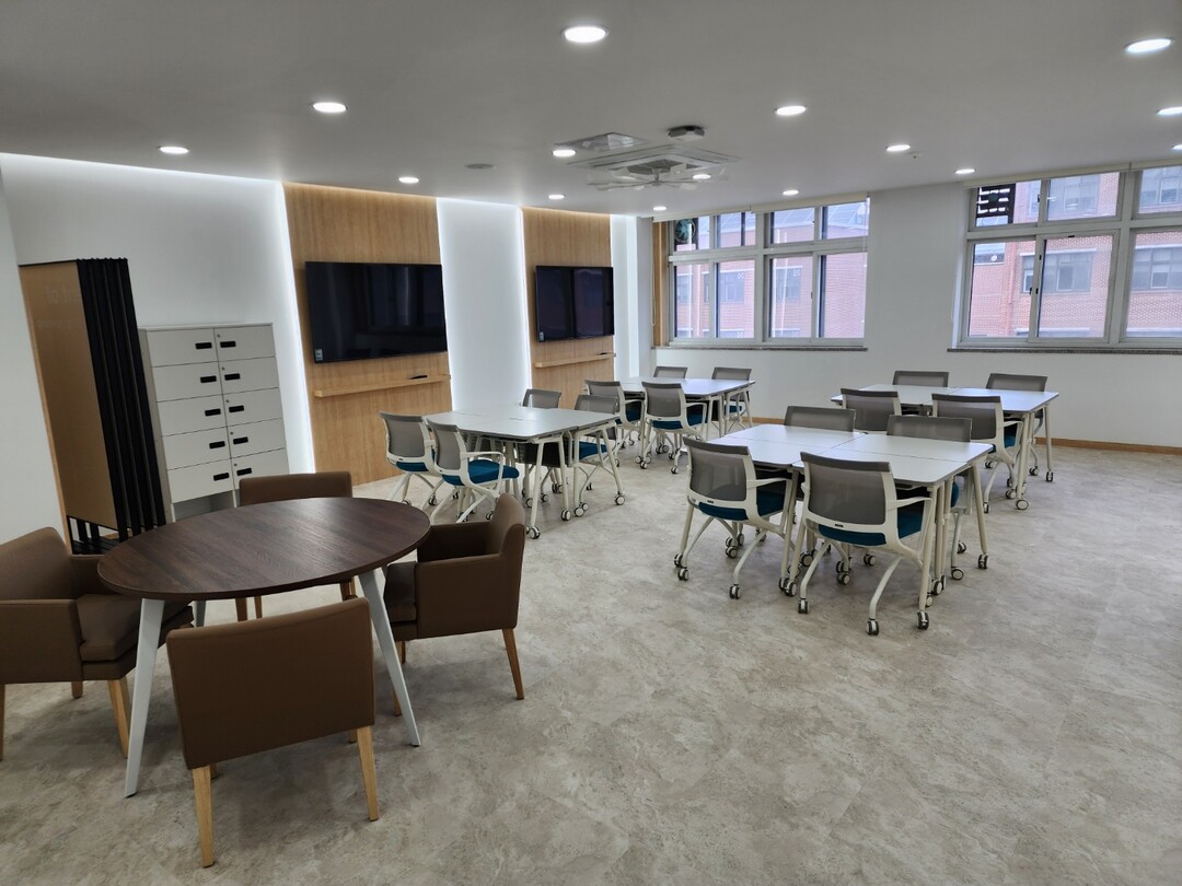 특히 경험중심 수업을 위한 이동식 책상 및 의자, 이동식 화이트보드, 사물함 등 기자재를 설치하여, 학생들이 그룹 프로젝트나 조별 토론 및 발표 등 다양하고 유연한 교수학습 활동이 가능한 공간으로 조성했다.