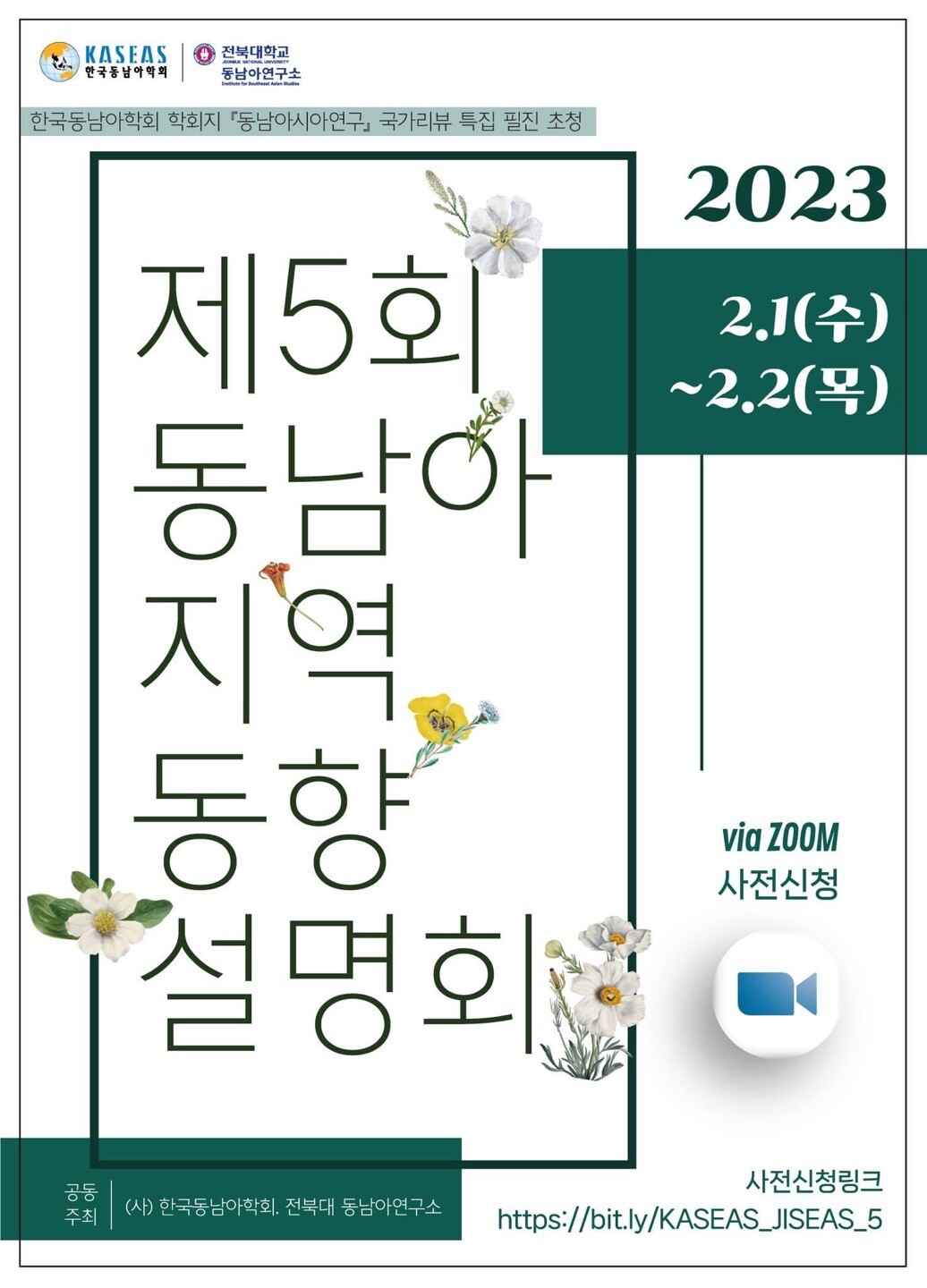 설명회에 참가하기 위해서는 사전 등록이 필요하다. 전북대 동남아연구소 홈페이지와 페이스북을 방문하여 사전 등록 양식을 제출하면 설명회 당일 이메일로 줌 링크를 받아볼 수 있다.