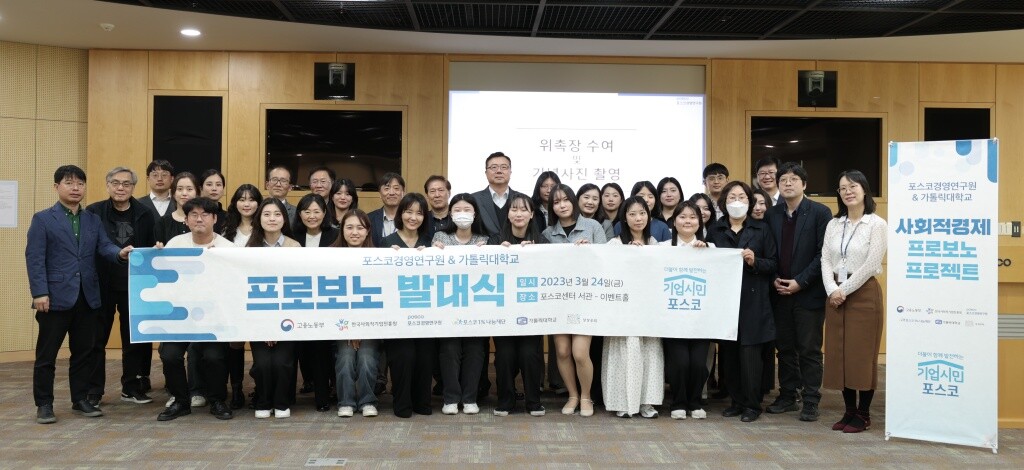포스코경영연구원과 한국사회적기업진흥원은 사회적경제조직 지원을 위해 4년 전부터 사회적경제 프로보노 프로젝트를 운영해왔다. 가톨릭대는 지난 2021년 3월 포스코경영연구원과 업무협약을 맺고 학계 대표로 참여했다.