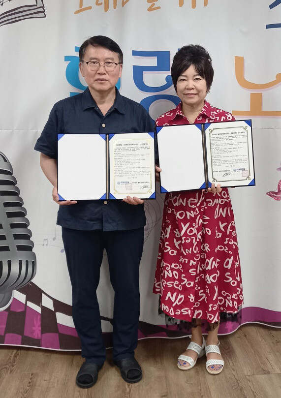 왼쪽부터 극동대 임광혁 미리학습지원센터장, 열린여가문화연구소 전민자 소장. |