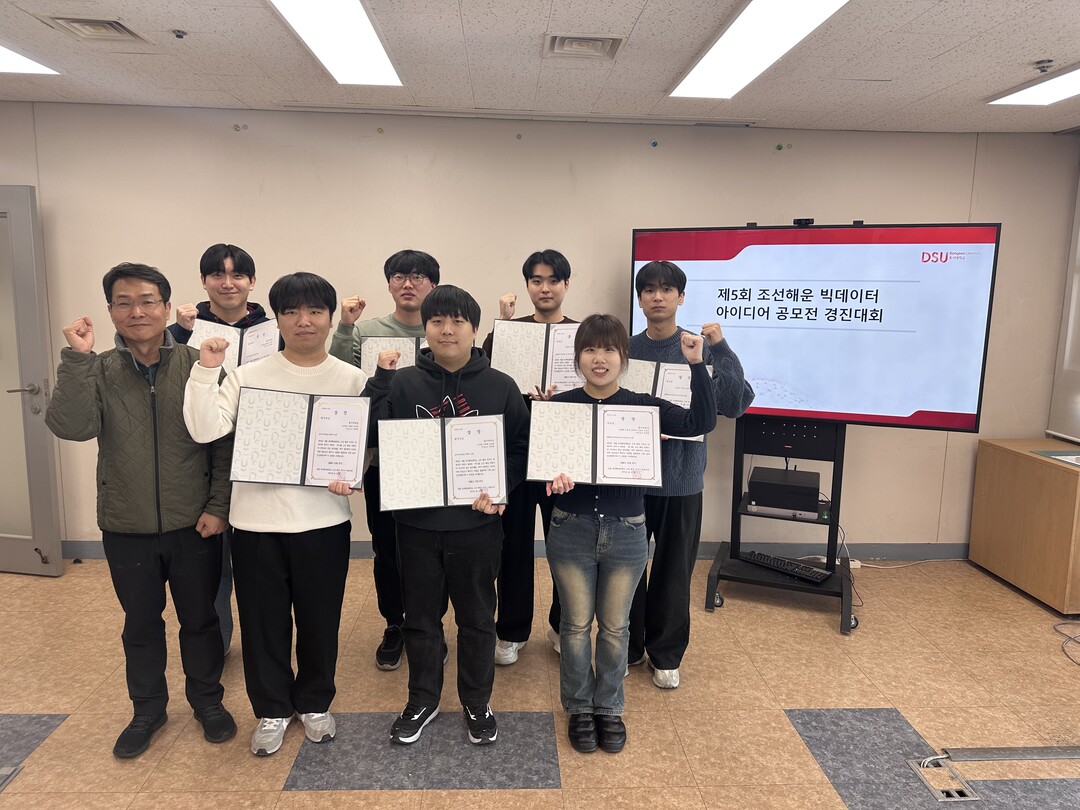 [대학저널 이선용 기자] 동서대학교는 컴퓨터공학과, 인공지능응용학과 학생들의 작품이 제5회 ‘조선 해운 빅데이터 아이디어 공모전 경진대회’에서 최우수상과 우수상을 수상했다고 9일 밝혔다.