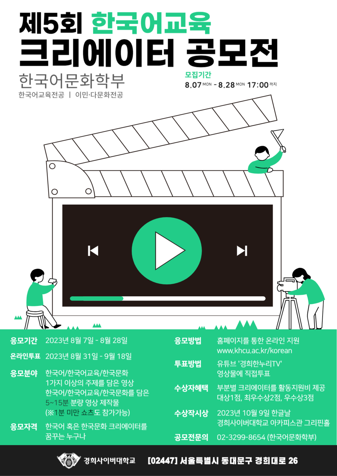 18일 경희사이버대에 따르면 올해 5회째를 맞은 공모전은 한국어 교육 또는 한국 문화 크리에이터를 꿈꾸는 사람을 대상으로 진행된다.