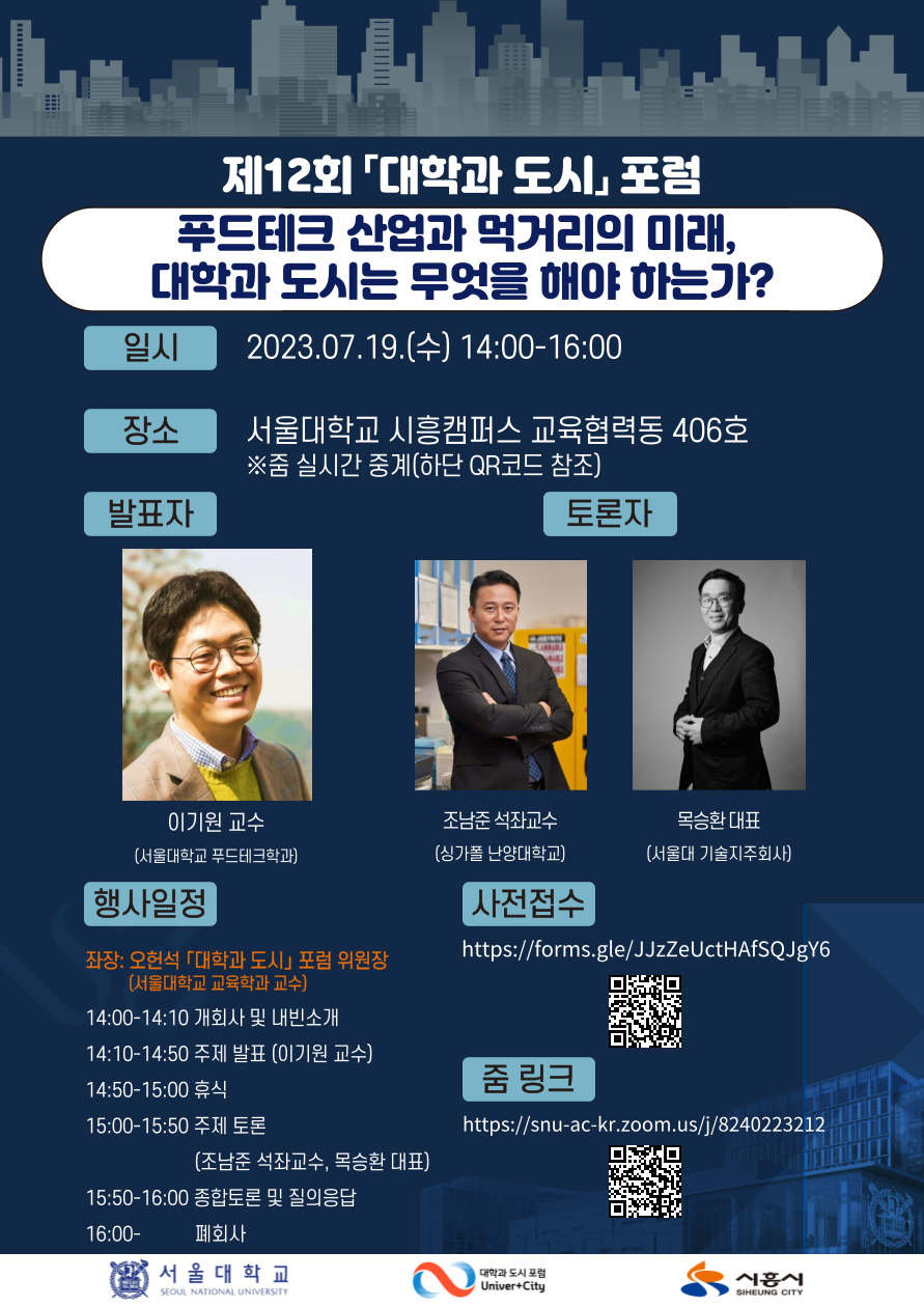 포럼의 주제는 ‘푸드테크 산업과 먹거리의 미래, 대학과 도시는 무엇을 해야 하는가?’이다.