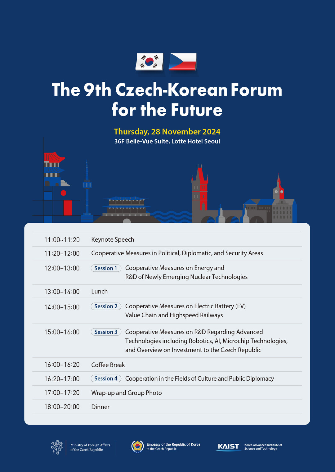 KAIST 김경수 대외부총장은 “KAIST는 한국 외교부와 민간, 그리고 주체코한국 대사관의 지원을 기반으로 올해 2024년부터 사무국을 담당하여 본 포럼을 주관하고 있다. 우수한 과학기술 역량을 바탕으로 한-체코 양국 간 글로벌 연구개발 협력과 교류 증진에 지원을 아끼지 않을 예정”이라고 말했다.
