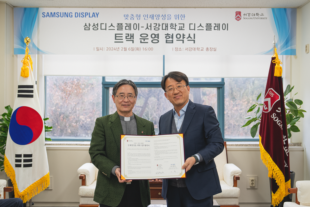 [대학저널 온종림 기자] 서강대학교와 삼성디스플레이가 지난 6일 서강대 본관 2층 회의실에서 ‘디스플레이 분야 우수 인재 양성 및 확보를 위한 협약식’을 체결했다.