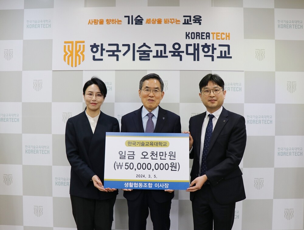 [대학저널 온종림 기자] 한국기술교육대학교 소비자생활협동조합은(이하 ‘한기대 생협‘)이 5일 대학 발전기금으로 5,000만원을 기탁했다.