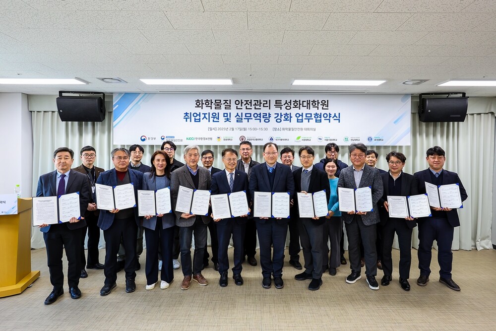 이번 협약에는 서울시립대·대구가톨릭대·호서대(유해성 시험 분야), 경성대·서경대(유·위해성 평가관리 분야), 전남대·국립한국교통대(취급시설 안전관리 분야) 등 총 7개 특성화대학원이 참여하며, 실무 역량 강화 및 취업 연계를 통한 화학물질 안전관리 전문인력 양성에 협력할 예정이다.