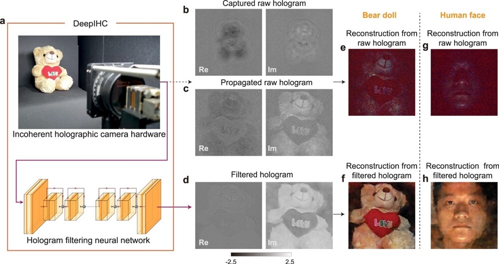 딥러닝 알고리즘은 이런 단점을 극복하는 도구가 됐다. 연구팀은 딥러닝 알고리즘을 통해 카메라의 광학적 불안전성으로 생긴 노이즈를 실시간으로 개선했다. 결과물은 풀컬러 홀로그래픽 디스플레이 시스템에 제공해 실시간 홀로그램 스트리밍이 가능해졌다.