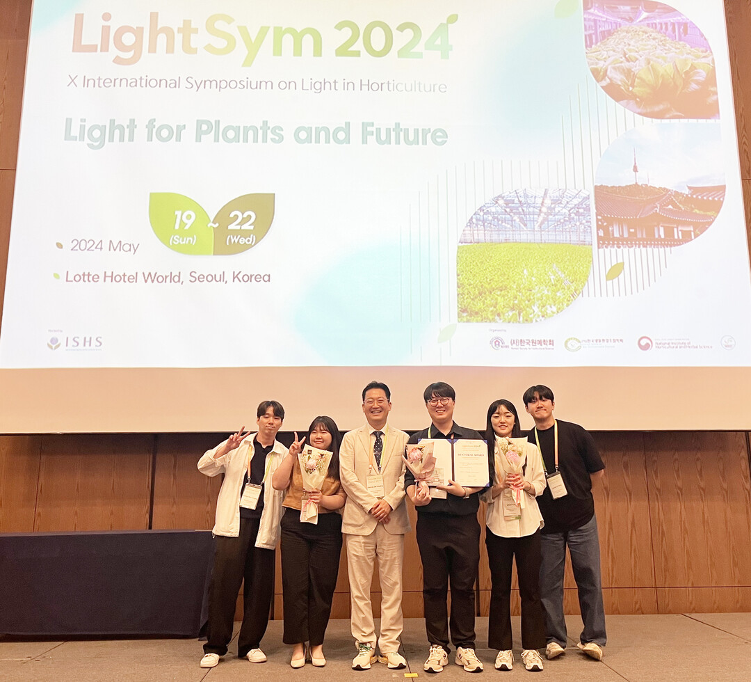 ‘LightSym2024, 제10차 국제원예광심포지엄’에서 우수구두발표상을 수상한 황승재 교수 연구팀. 사진=경상국립대 제공 |
