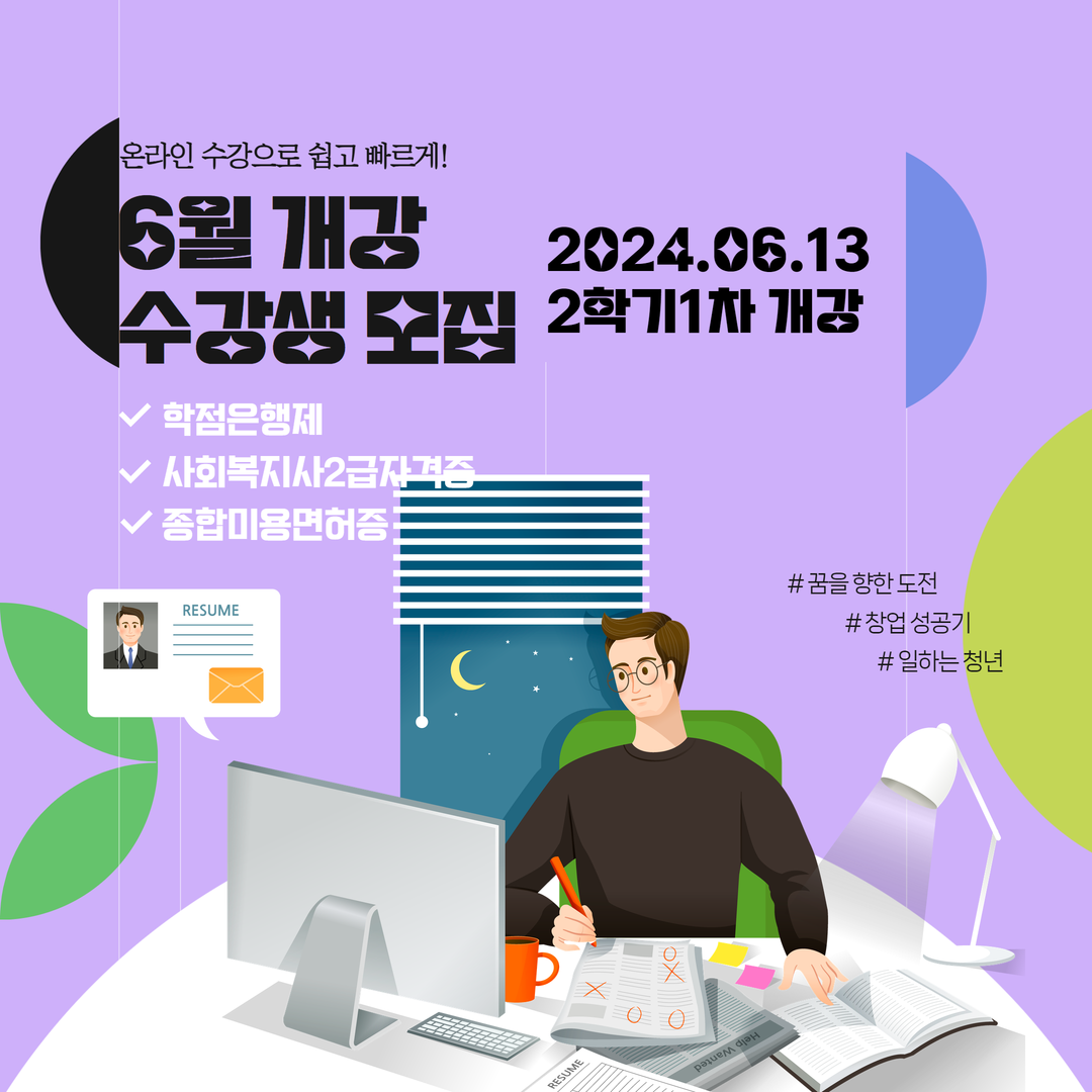 이에 대해 1:1 전문 멘토가 상주하고 있어 학습 설계 및 자료도 온라인으로 제공되고 있다. 필요한 교안은 교육원 내에서 자체적으로 무료 배부할 예정이며, 2024년 최신 개정안을 담은 교안이다. 다양한 장학 혜택도 지원할 예정이라 학비 부담도 줄였다.