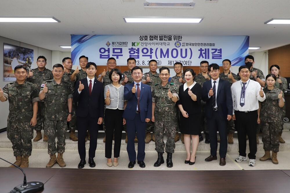 [대학저널 온종림 기자] 건양사이버대학교가 25일 경기 포천시 소재 1기갑여단에서 , 육군 1기갑여단, 한국보안안전관리협회가 다자간 협약을 체결했다.