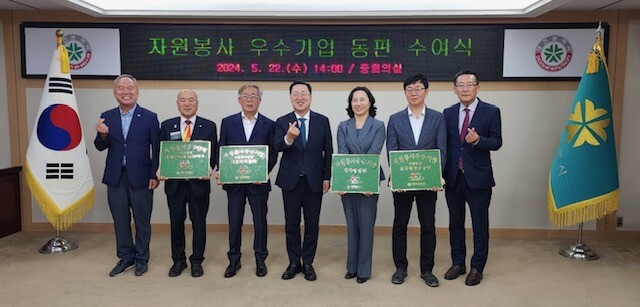 사학연금이 대전광역시가 선정하는 2024년 자원봉사 우수기업에 선정되어 22일 동판 수여식에 참석했다. 사진=사학연금 제공 |