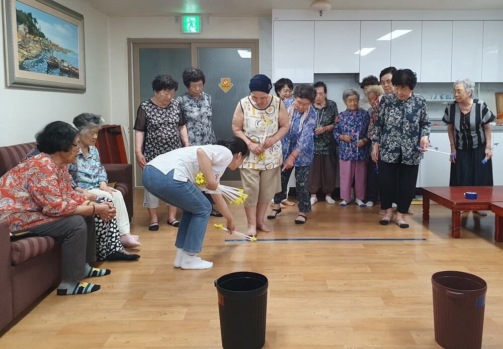 봉사활동을 주관한 경동대 김진하 간호학과 교수는 “7월 초부터 현재까지 명파리경로당, 거진경로당 등 다섯 곳을 14회 돌며 212명의 어르신께 프로그램을 적용하였다”면서, 고성은 특히 65세 이상이 전체의 30%를 넘는 초고령지역이라 선택하게 되었다고 말했다.