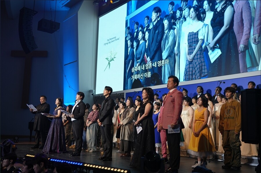 ‘봄날의 음악회’ 마지막 무대는 혁신과 도전으로 지역성장을 견인하는 영성중심 대학으로 성장하는 한세대의 구성원들이 지역 시민에게 하나님의 축복을 전하는 마음을 담은 “송축해 내 영혼 내 영혼아 거룩하신 이름, 이전에 없었던 노래로 나 주님을 경배해”라는 가사의 ‘송축해 내 영혼’ 찬양과 “난 너를 사랑하네 이 세상은 너뿐이야 소리쳐 부르지만 저 대답 없는 노을만 붉게 타는데”라는 가사의 가요 ‘붉은 노을’을 모든 출연진이 함께 불러 관객에게 많은 박수를 받았다.