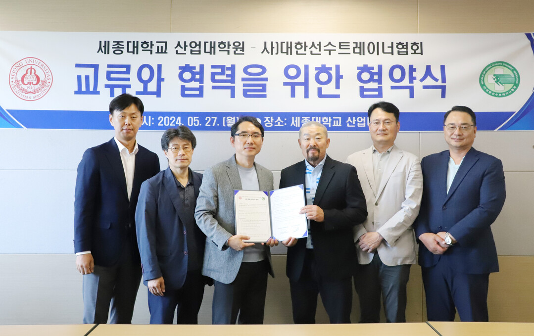 [대학저널 이선용 기자] 세종대학교 산업대학원은 지난 5월 27일 세종대 광개토관에서 대한선수트레이너협회와 교류 협력을 위한 업무 협약을 체결했다.