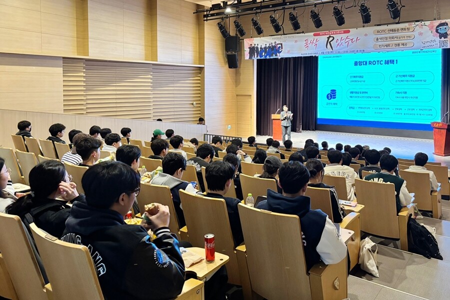 [대학저널 온종림 기자] 중앙대학교가 15일 서울캠퍼스 310관(100주년기념관) 대신홀에서 ‘학생군사교육단(ROTC, 이하 학군단) 비전설계 토크콘서트’ 행사를 개최했다.