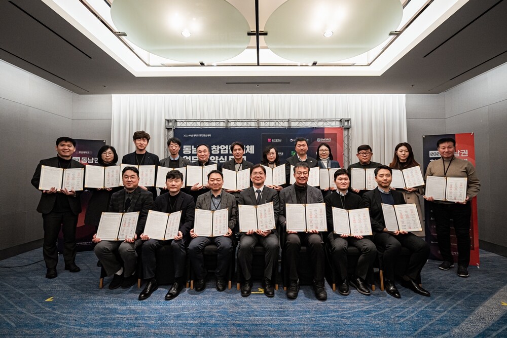 [대학저널 온종림 기자] 창업중심대학 사업을 수행 중인 부산대학교 창업지원단이 동남권 창업 협의체 구성을 위해 동남권 창업협력 대학, 투자기관, 유관기관, 기업 등 21곳이 참여하는 ‘동남권 창업 협의체 업무협약식’을 20일 부산 파라다이스호텔에서 열린 창업 성과공유회 ‘제2회 메카스타트업 데이’에서 개최하고 본격 운영에 나서기로 했다.