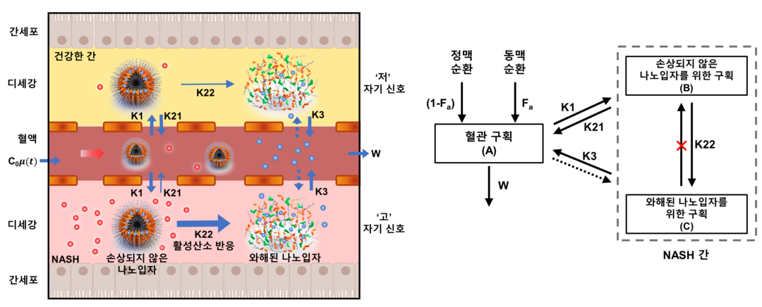 망간 이온 결합 빌리루빈 나노입자는 간 내 활성산소 증가에 따라 MRI 신호를 증폭했고 연구팀은‘유사 3-구획 모델’을 통해 한 번의 MRI 촬영으로 비알콜성 지방간염의 진행 정도를 결정할 수 있었다. 이를 통해 비알콜성 지방간염의 초기 단계부터 간경화에 이르기까지 간 질환의 진행 상태를 연속적으로 모니터링 할 수 있었다.