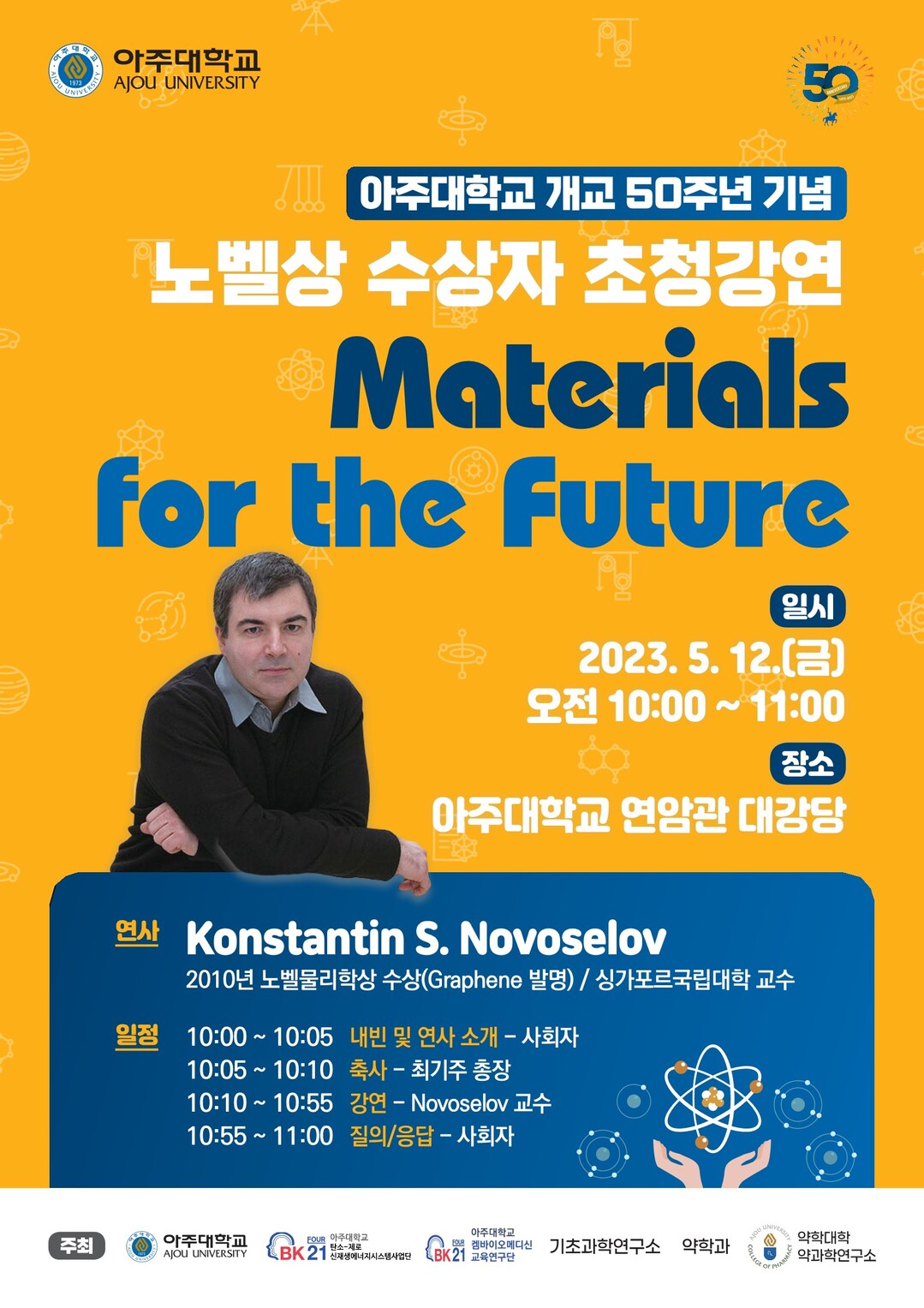 10일 아주대에 따르면 오는 12일 아주대 연암관에서 2010년 노벨 물리학상 수상자 콘스탄틴 노보셀로프 싱가포르국립대학 (NUS)교수의 초청 강연을 한다.