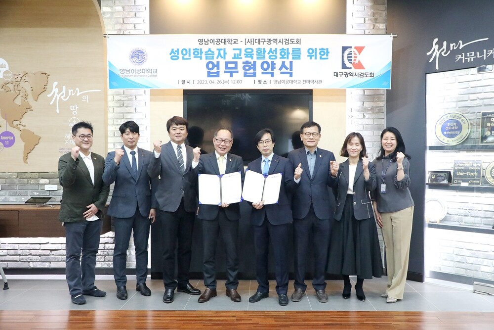 영남이공대와 대구시검도회는 협약을 통해 ▲지역 성인학습자 교육 협력과 지원 ▲성인학습자 교육과정 개발과 운영 ▲성인학습자 교육과정 참여자 대상 장학금 지원 ▲성인학습자 공동사업 추진 ▲거버넌스 구축을 통한 인력 육성과 홍보 지원 등을 하기로 했다.