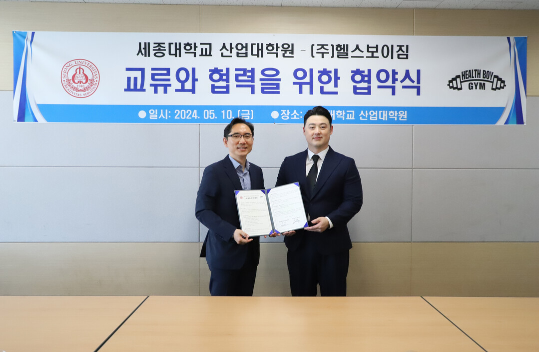 [대학저널 이선용 기자] 세종대학교 산업대학원 스포츠산업학과가 지난 5월 10일 세종대 광개토관에서 헬스보이짐과 상호 발전을 위한 협약을 체결했다.