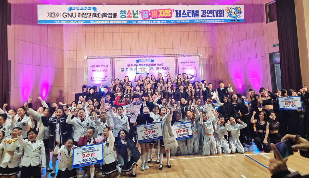 [대학저널 이선용 기자] 경상국립대학교 해양과학대학은 11월 28일 국립대학육성사업의 일환으로 ‘제3회 GNU 해양과학대학장배 청소년 꿈·끼 자랑 페스티벌’을 개최했다고 5일 밝혔다.
