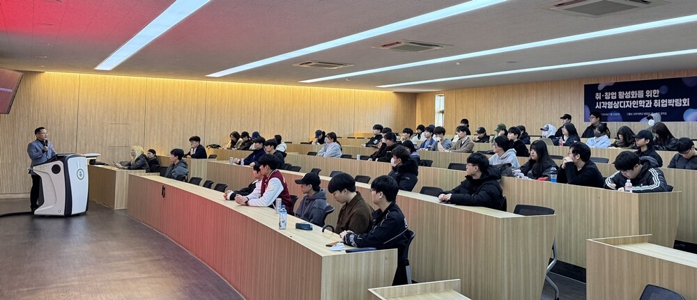 [대학저널 이선용 기자] 광주대학교 시각영상디자인학과는 11월 26일 오후 교내 행정관 3층 스마트강의실에서 재학생들에게 취·창업 기회를 제공하고 업계 트렌드와 실무 환경 이해를 돕기 위해 취업박람회를 개최했다고 27일 밝혔다.