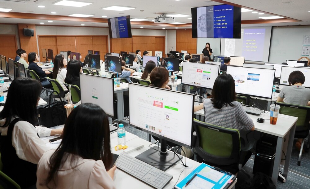 지난 16일 삼육대 에스라관 SW실습실에서 남양주시 공무원 대상 '생성형 AI 활용 기초교육'이 진행되고 있다. 사진=삼육대 제공 |