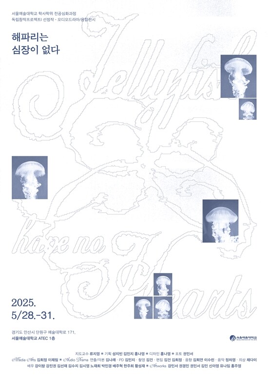 [대학저널 온종림 기자] 서울예술대학교는 오는 28일부터 31일까지 4일간, 아텍(ATEC) 1층에서 전시 “해파리는 심장이 없다”를 개최한다. 이번 전시는 2025학년도 학사학위 전공심화과정의 ‘독립창작프로젝트’ 수업을 통해 기획된 작품으로, 다양한 전공의 학생들이 팀을 이루어 창의적인 아이디어를 바탕으로 제작한 융합형 전시다.