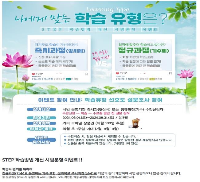 운영 강사를 활용한 학습 문의 답변 서비스와 더불어 학습 방법 변경 의견을 수용하기 위한 ‘학습유형 선호도 설문 이벤트’도 진행 중이다.