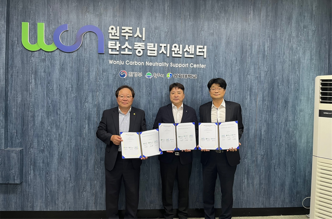 [대학저널 이선용 기자] 상지대학교가 상지대 대학원, 원주시 탄소중립지원센터, ㈜에코피앤씨와 지난 19일 원주시 탄소중립지원센터에서 온실가스 감축 및 지속 가능한 탄소중립 사회 실현을 위한 공동업무협약을 체결했다.