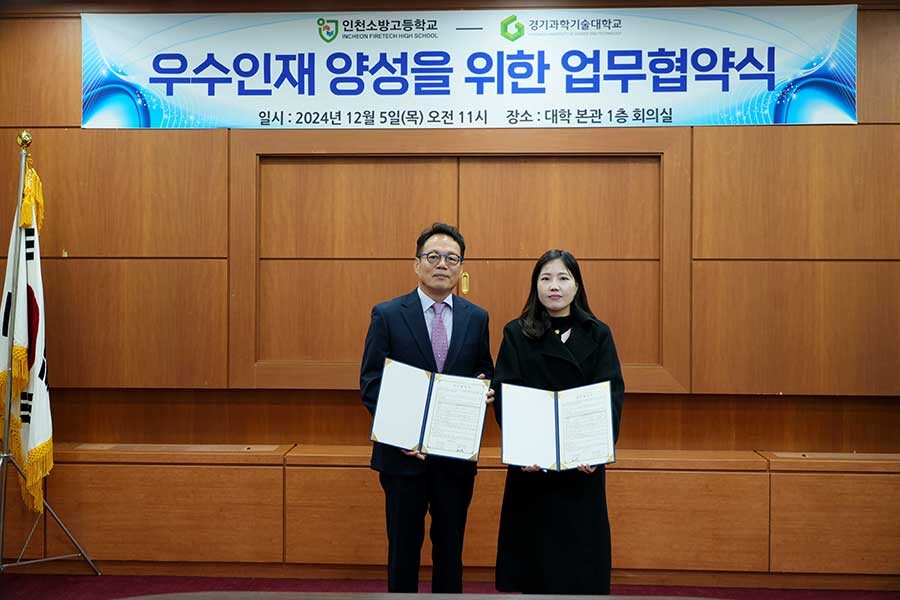 [대학저널 온종림 기자] 경기과학기술대학교가 인천소방고등학교와 지난 5일 본관 1층 대회의실에서 고교-대학교 연계 우수인재 양성을 위한 업무협약을 체결했다.