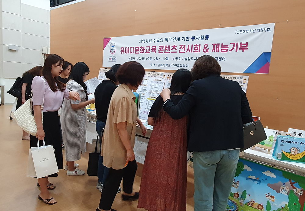 [대학저널 온종림 기자] 경복대학교 유아교육학과는 이달 12일부터 10월 말까지 남양주시육아종합지원센터에서 학생들이 직접 개발한 다문화교육콘텐츠와 교재교구 전시회를 갖고 재능기부를 한다.