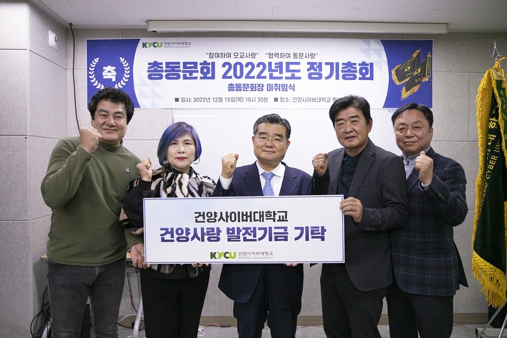 건양사이버대에 따르면 기탁식에서는 제7대 총동문회 300만 원, 이광호 제7대 총동문회장이 200만 원을 각각 발전기금으로 기부했다.