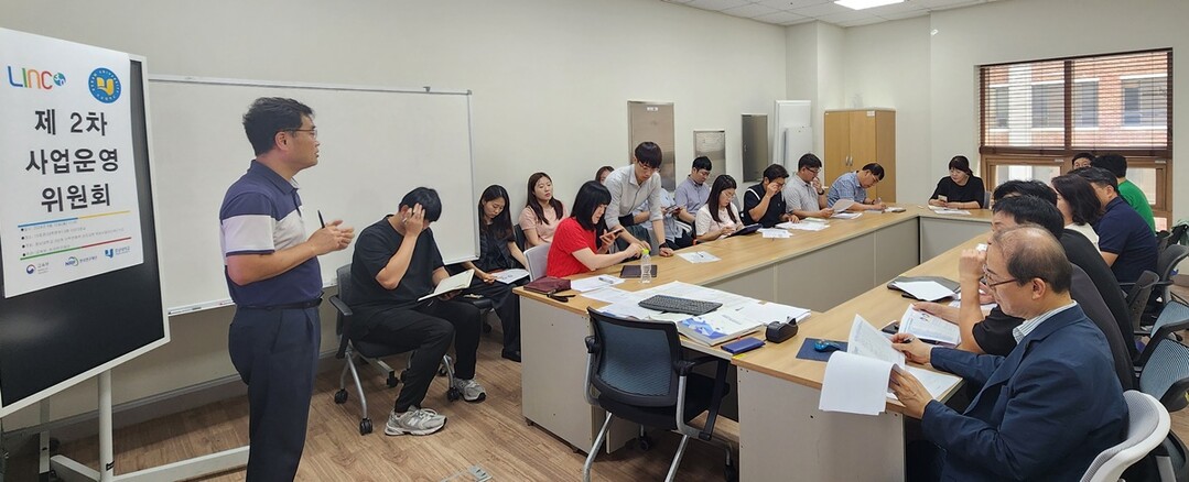 이날 회의에는 정제평 사업단장을 비롯해 이은경 부단장, 각 사업실별 실장, 각 특화분야 ICC 센터장, 산학협력중점교수, 담당 직원 등 26명이 참석했다.