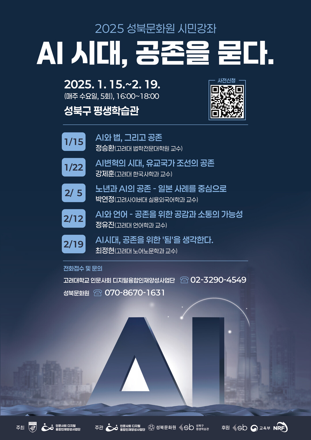 강좌는 ‘AI 시대, 공존을 묻다’를 주제로 1월 15일부터 2월 19일까지 매주 수요일 성북구 평생학습관에서 진행된다.