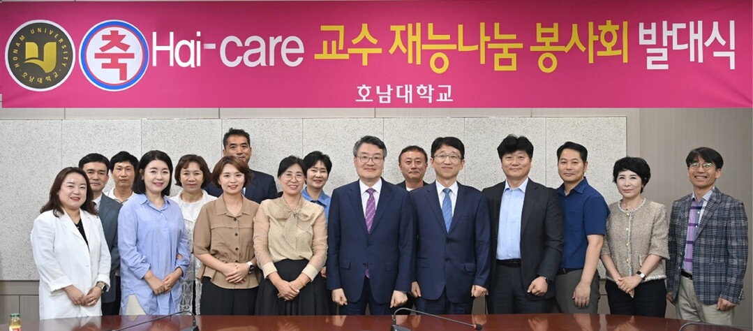 [대학저널 이선용 기자] 호남대학교는 지역 사회와 함께하는 다양한 전문 봉사활동을 적극적으로 실천하기 위해 교수들로 이뤄진 ‘HAI-Care 교수 재능나눔 봉사회’ 발족과 함께 9월 26일 본관 3층 교무위원회실에서 발대식을 가졌다.