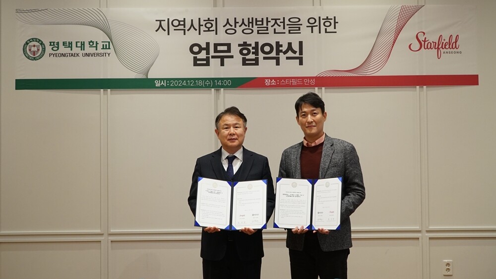 [대학저널 온종림 기자] 평택대학교가 18일 스타필드 안성과 지역사회 상생 및 문화콘텐츠 발전을 위한 업무협약을 맺었다.