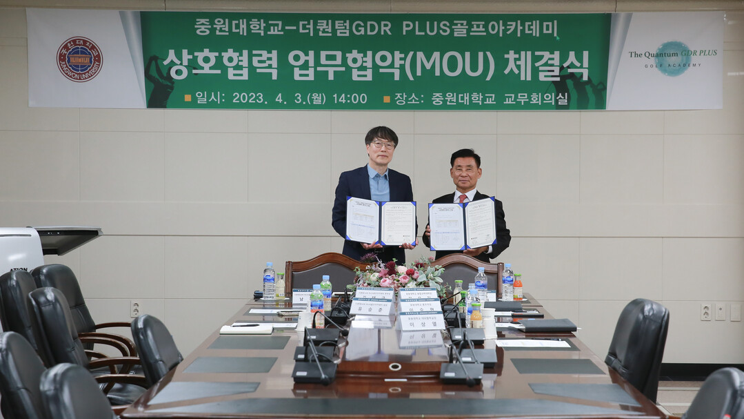 협약식은 지난 3일 중원대에서 진행됐으며, 중원대 황윤원 총장과 더퀀텀GDR PLUS골프아카데미 남기탁 대표이사을 비롯해 양 기관 관계자들이 참석했다.