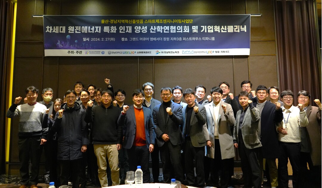 [대학저널 이선용 기자] 국립창원대학교 울산⸱경남지역혁신플랫폼 스마트제조엔지니어링사업단이 원전에너지 특화 분야의 R&D과제 발굴 및 지식과 경험을 공유하고, 인재 육성 방안 논의를 위한 ‘산학연협의회 및 기업혁신클리닉’ 개최를 통해 경남 원전산업 발전에 앞장서고 있다고 25일 밝혔다.