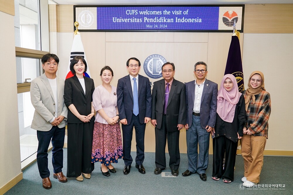 [대학저널 온종림 기자] 사이버한국외국어대학교가 최근 인도네시아 교육대학교(Universitas Pendidikan Indonesia)의 솔레후딘(Dr.M.Solehuddin) 총장을 비롯한 방문단을 맞이해 두 대학 간 교류 협력 방안을 논의했다.