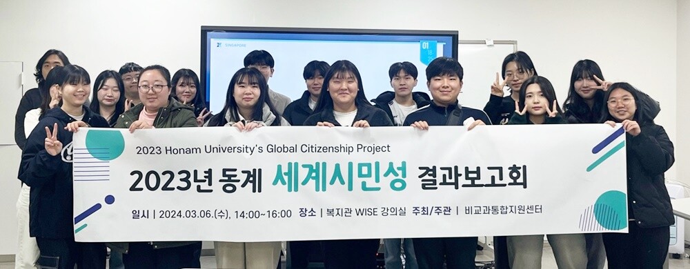 [대학저널 이선용 기자] 호남대학교 비교과통합지원센터가 3월 6일 복지관 WISE 강의실에서 대학혁신지원사업의 일환으로 지난 1월 실시했던 ‘2023학년도 동계 세계시민성 교육 프로그램’ 결과 발표회를 가졌다.