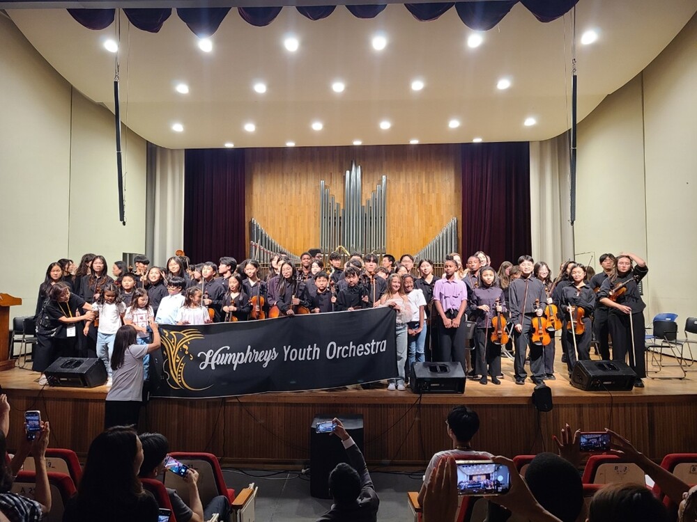 캠프 마지막 날 열린 파이널 콘서트를 마치고 험프리스 유스 오케스트라 단원들이 기념사진을 촬영하고 있다. 사진=평택대 제공 |