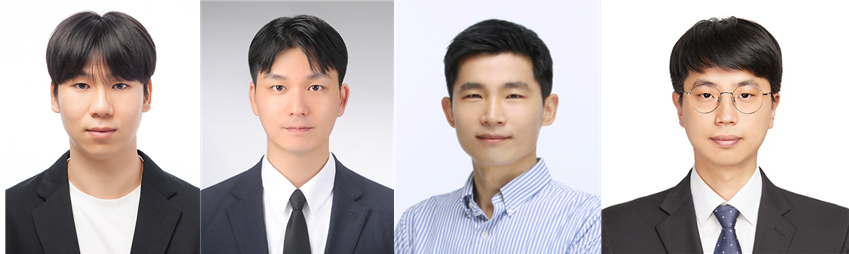 왼쪽부터 정민수 학생(공동 제1저자), 이태규 학생(공동 제1저자), 장영준 교수(공동 교신저자), 김혁진 박사(공동 교신저자). |