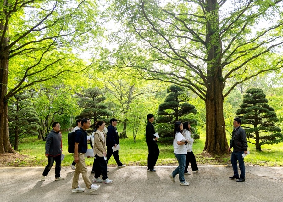 ‘학교정원 힐링, 산책형’은 조경 전문가의 숲 해설과 함께 교내 산책 코스를 걷는 방식으로 5월 8일, 12일, 13일 총 3회에 걸쳐 진행됐다. 참가자들은 10명 이내의 소규모 그룹으로 구성돼 보다 친밀하고 편안한 분위기 속에서 자연을 온전히 느끼며 산책을 즐겼다.