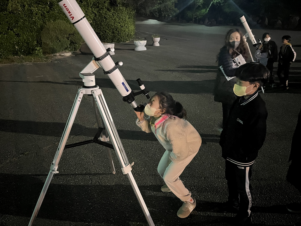 밤하늘 보석 찾기는 밤하늘의 별을 관측하는 천체관측 프로그램으로 은하와 별자리에 대한 설명을 듣고 천체망원경을 사용해 달과 별, 금성, 화성 등을 직접 관측했다.