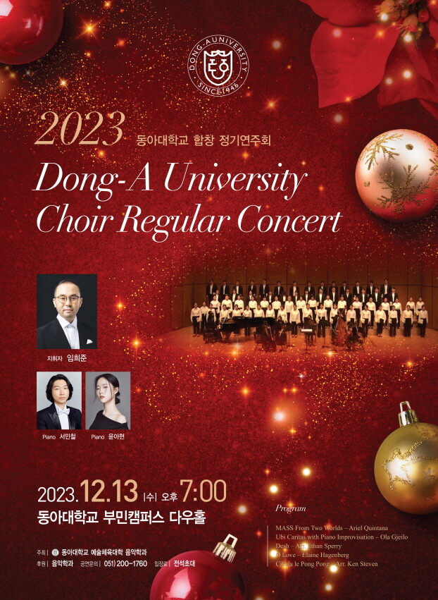 동아대 음악학과는 합창 정기연주회와 오케스트라 정기연주회, 작곡 정기연주회, 대학연합 윈드 오케스트라, 부산 시민을 위한 ‘Dong-A String Ensemble’ 등을 해마다 열어 지역주민 문화향유 기회를 넓히는 작업을 펼쳐오고 있다.