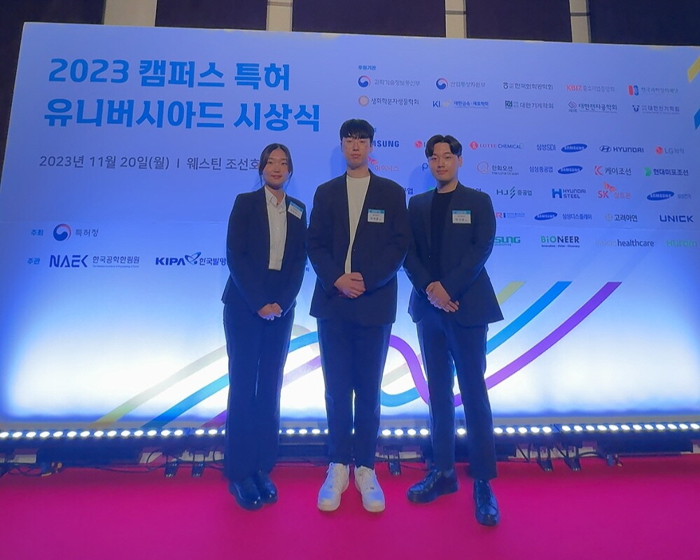 ‘2023 캠퍼스 특허 유니버시아드’ 우수상을 받은 (왼쪽부터) 정민아, 박제윤, 박지환 학생. |