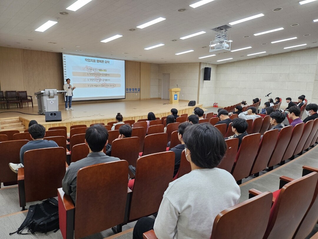 [대학저널 이선용 기자] 극동대학교 작업치료학과가 재학생을 대상으로 ‘작업치료 행복론’을 주제로 한 특강을 개최했다.