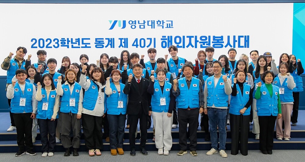 지난 26일, 천마아트센터 이시원글로벌컨벤션홀에서 열린 제40기 해외자원봉사대 발대식을 가졌다. 영남대 해외자원봉사대은 학교를 대표하는 학생 봉사단으로, 2001년부터 매 학기 전 세계로 파견되어 자원봉사 활동을 펼쳐왔으며, 지금까지 2,840여 명이 세계 각지에서 봉사를 실천했다.